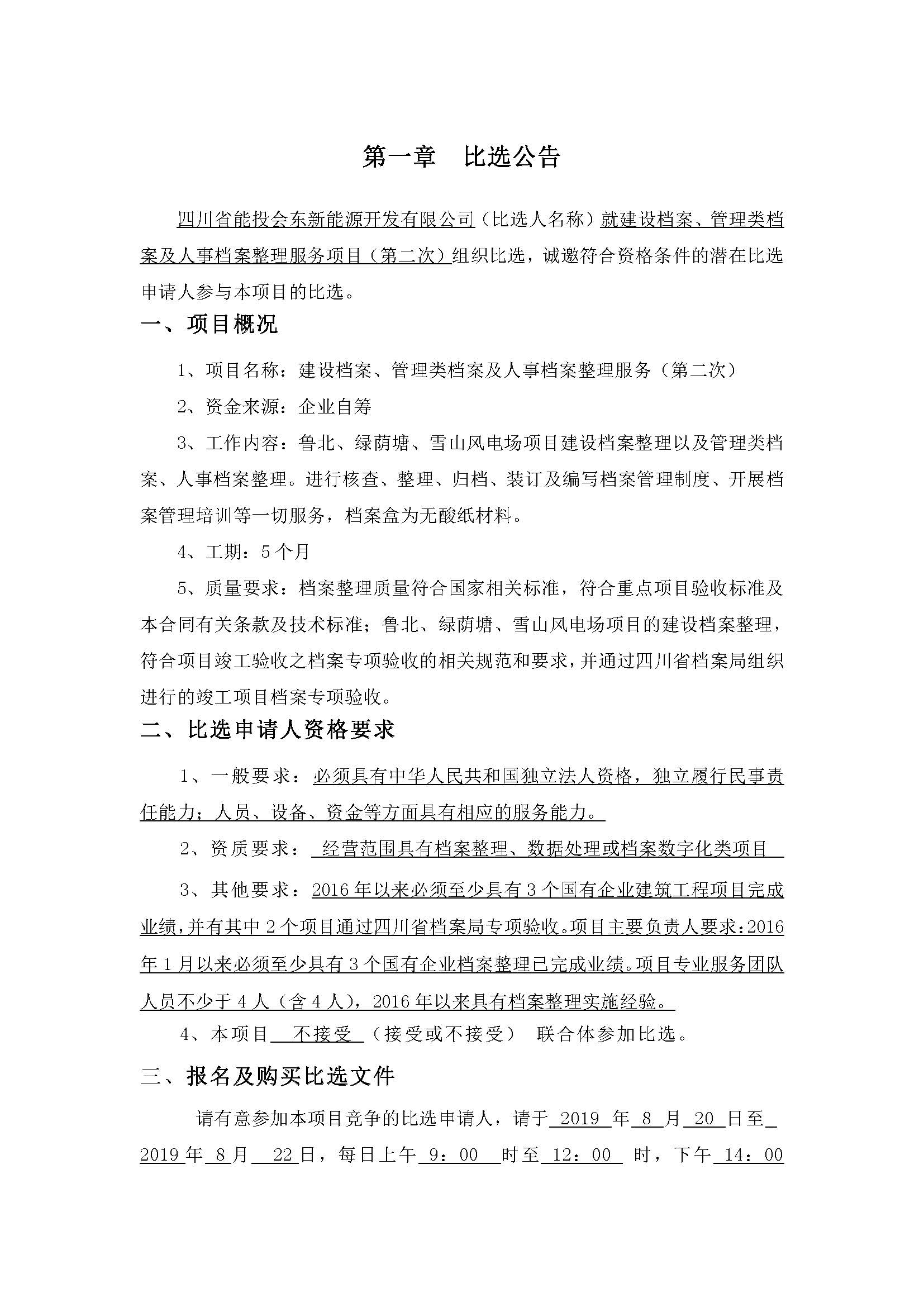 四川省能投会东新能源开发有限公司(比选人名称)就建设档案、管理类档案及人事档案整理服务项目(第二次)组织比选,诚邀符合资格条件的潜在比选申请人参与本项目的比选。