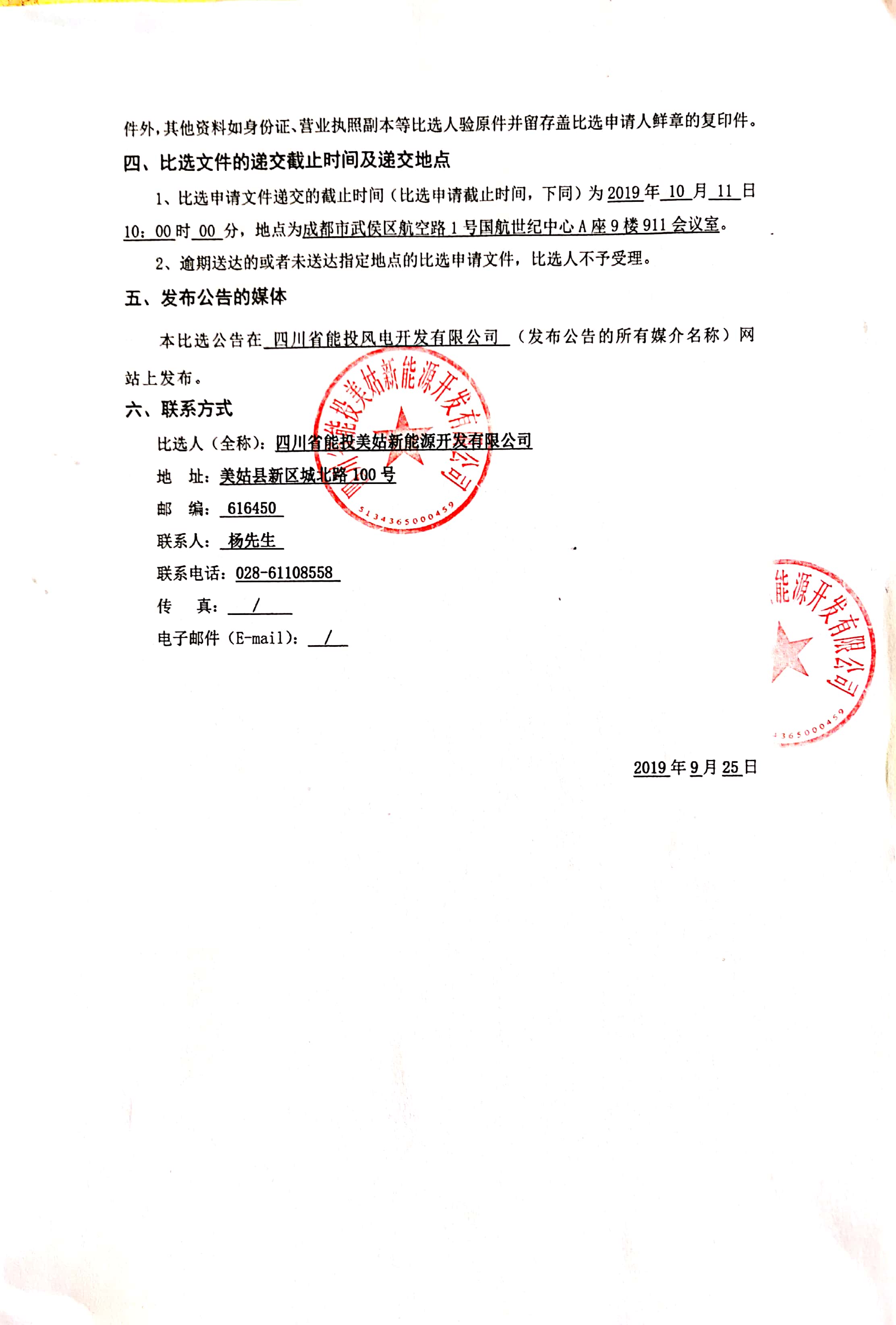 比选人(全称):四川省能投美姑新能源开发有限公司