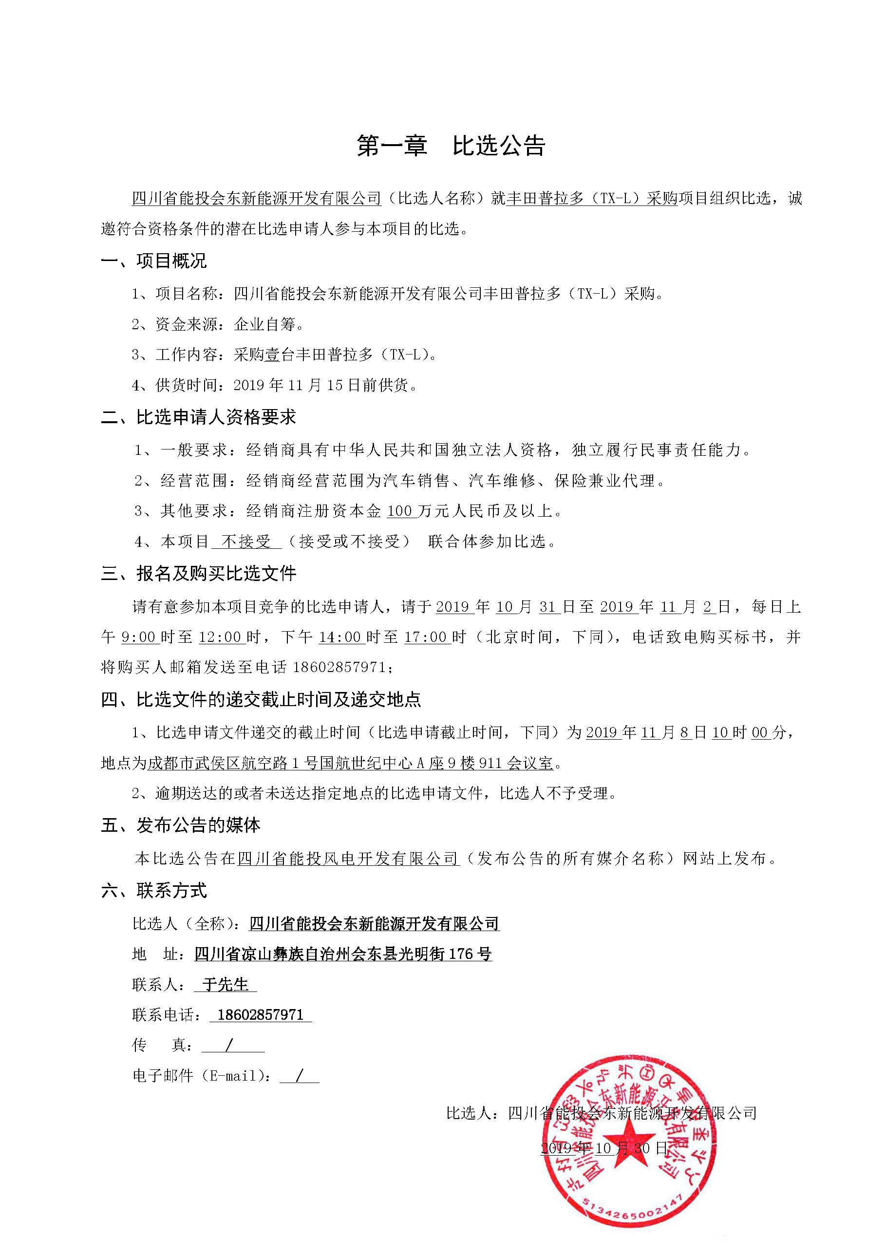 1、项目名称:四川省能投会东新能源开发有限公司丰田普拉多(TX-L)采购。