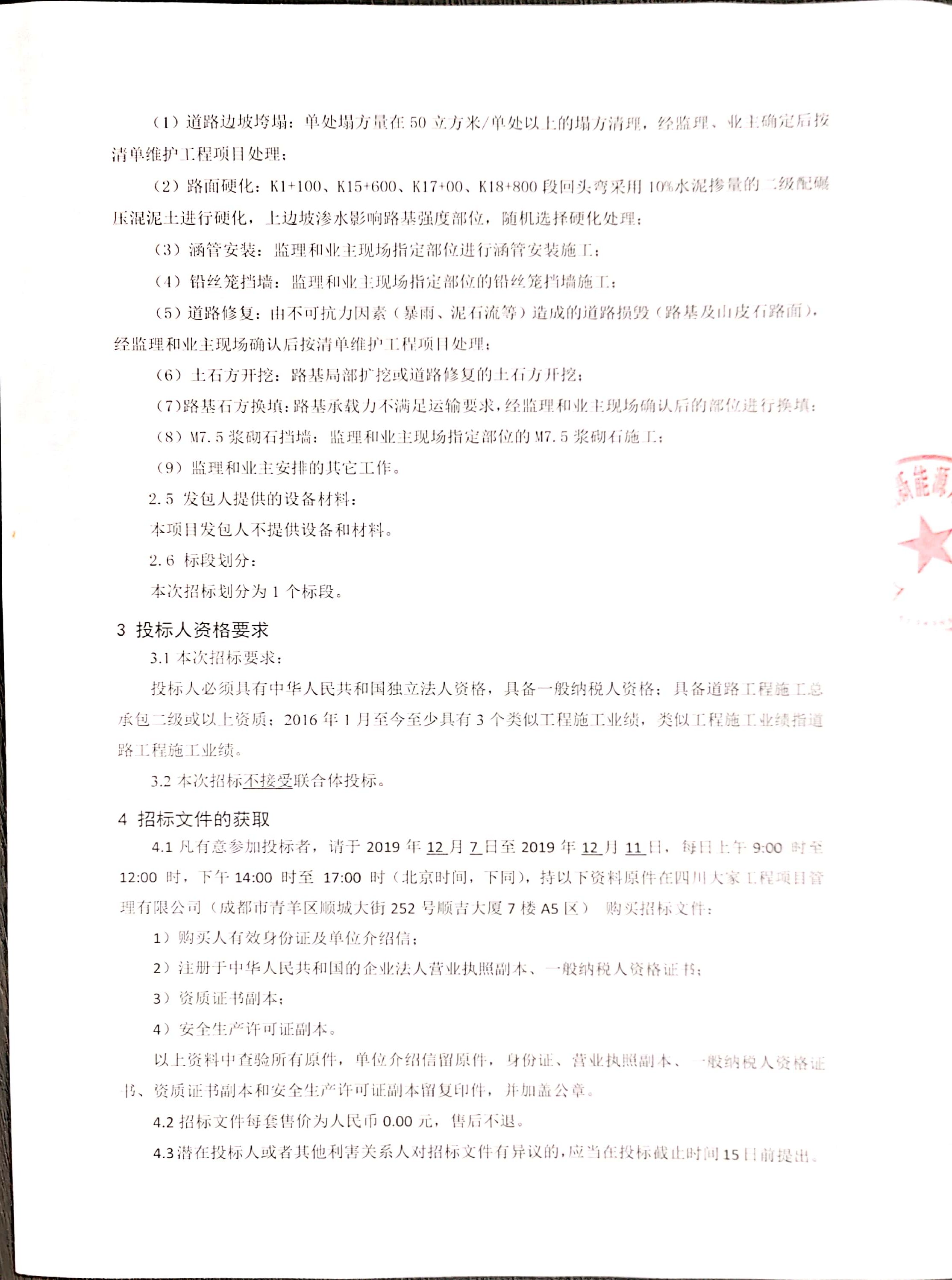 4.1凡有意参加投标者,请于2019年12月7日至2019年12月11日,每日上午9:00 时至 12:00 时,下午14:00 时至 17:00 时(北京时间,下同),持以下资料原件在四川大家工程项目管理有限公司(成都市青羊区顺城大街252号顺吉大厦7楼A5区) 购买招标文件: