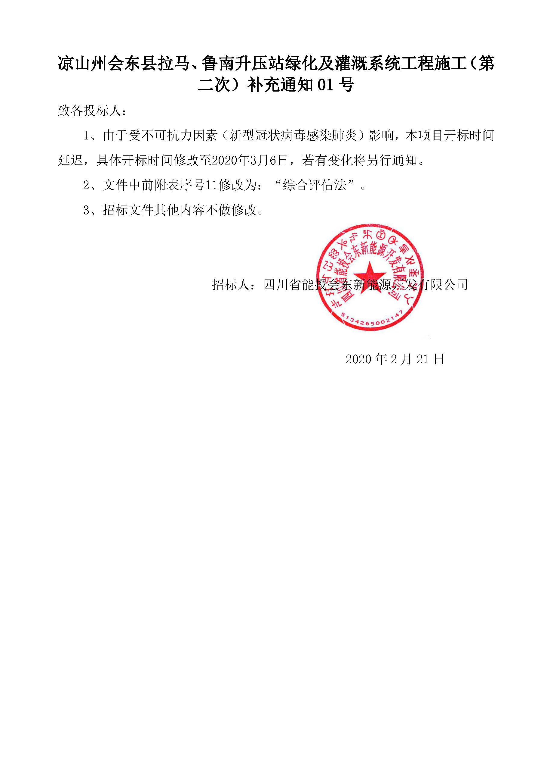 1、由于受不可抗力因素(新型冠状病毒感染肺炎)影响,本项目开标时间延迟,具体开标时间修改至2020年3月6日,若有变化将另行通知。