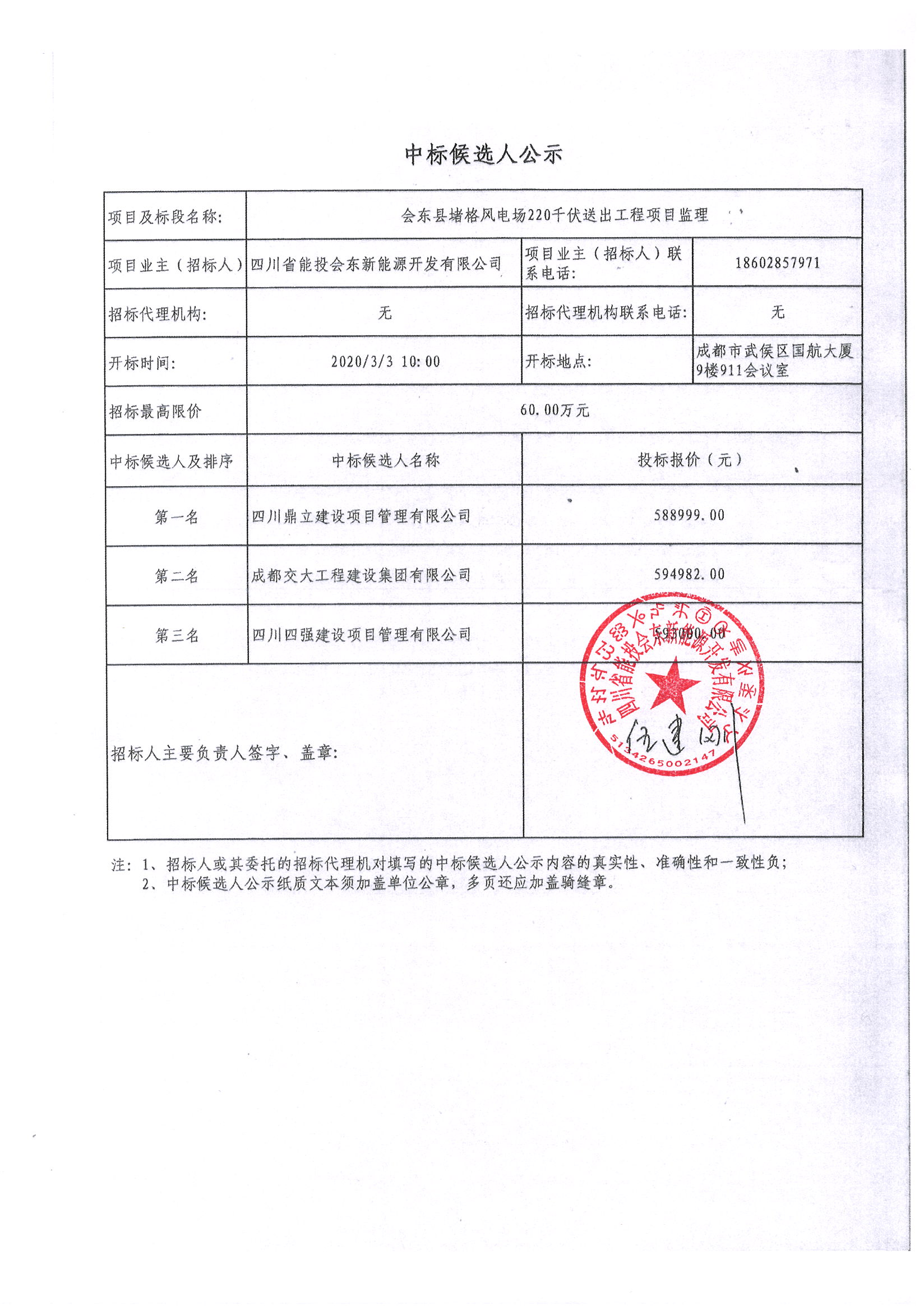 | 项目业主(招标人): | 四川省能投会东新能源开发有限公司 | 项目业主(招标人)联系电话: | 18602857971 | |||||
