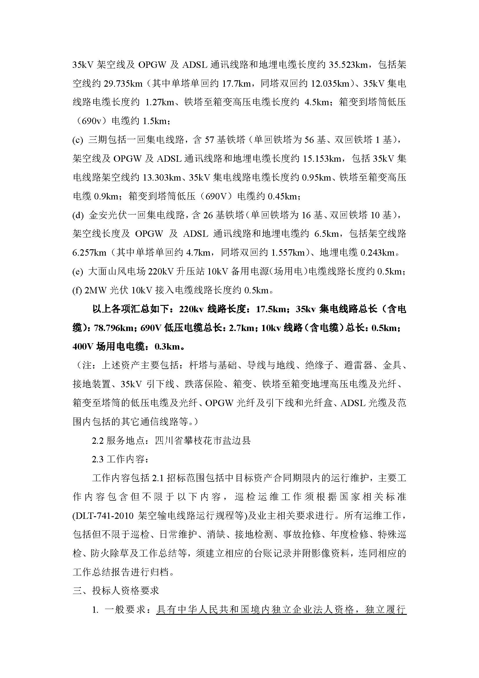 3. 其他要求:2017年1月起至今承担过3个(含3个)以上35kV输电线路建设或运行维护项目。