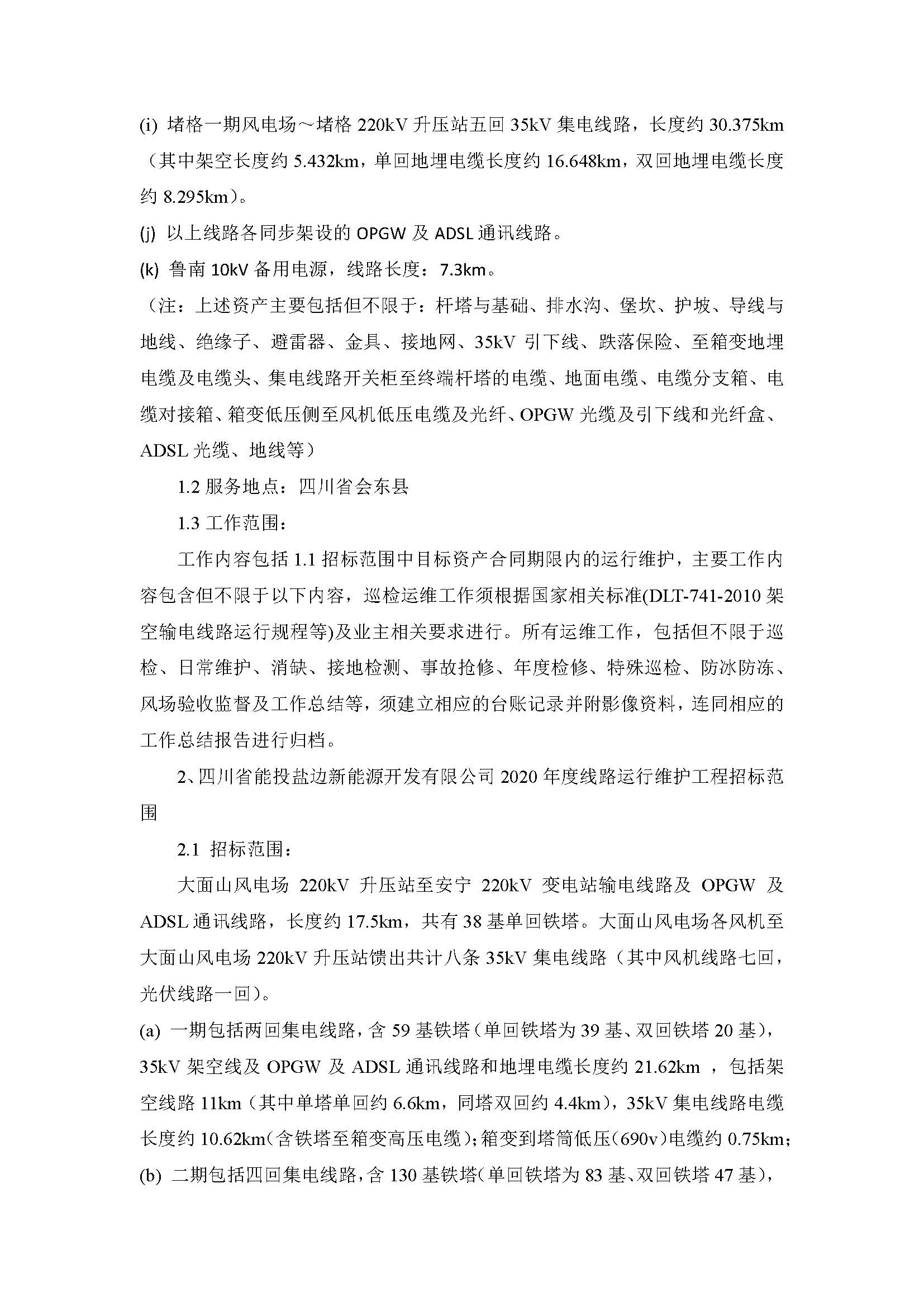 1、四川省能投会东新能源开发有限公司2020年度线路运行维护工程招标范围
