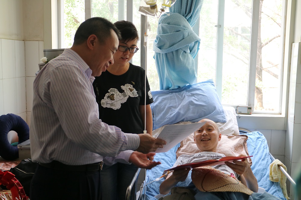 风电公司党委副书记、总经理何勇陪同看望慰问,并代表风电全体员工给杨建同志送上了节日的祝福和慰问。杨建同志对集团及风电公司上下一直以来的悉心关照表示十分的感谢,并表示一定早日战胜病魔,早日重回工作岗位。