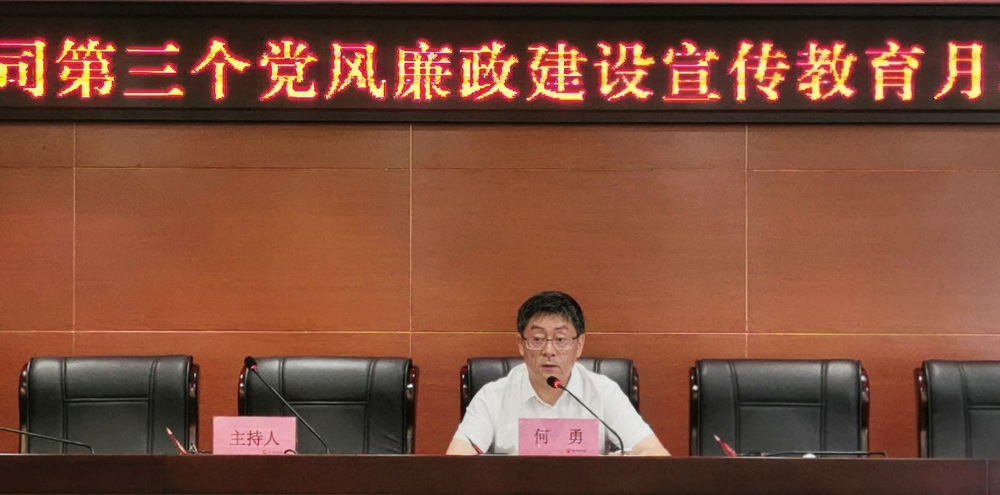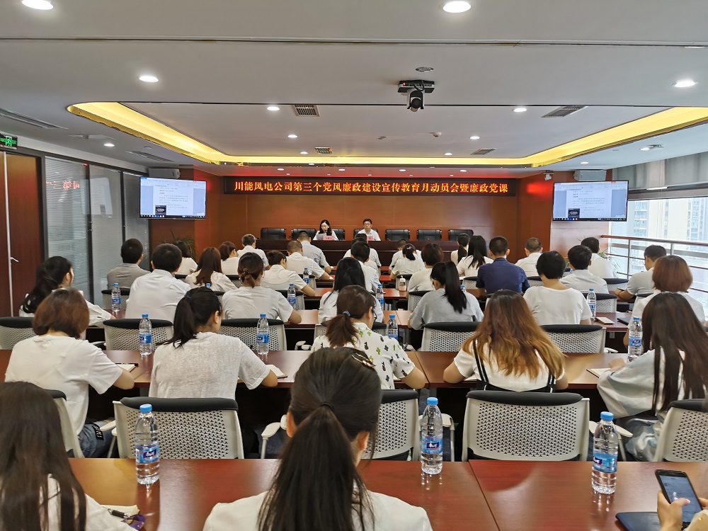 政建设宣传教育月工作部署,8月1日上午,川能风电公司召开第三个党风廉政建设宣传教育月动员会暨廉政党课。会议由党委委员、纪委书记林惠主持。党委书记、董事长何勇参加并作“牢记初心担使命、清正廉洁作表率”廉政党课报告。公司领导班子、全体员工及所属公司在蓉员工参加会议。