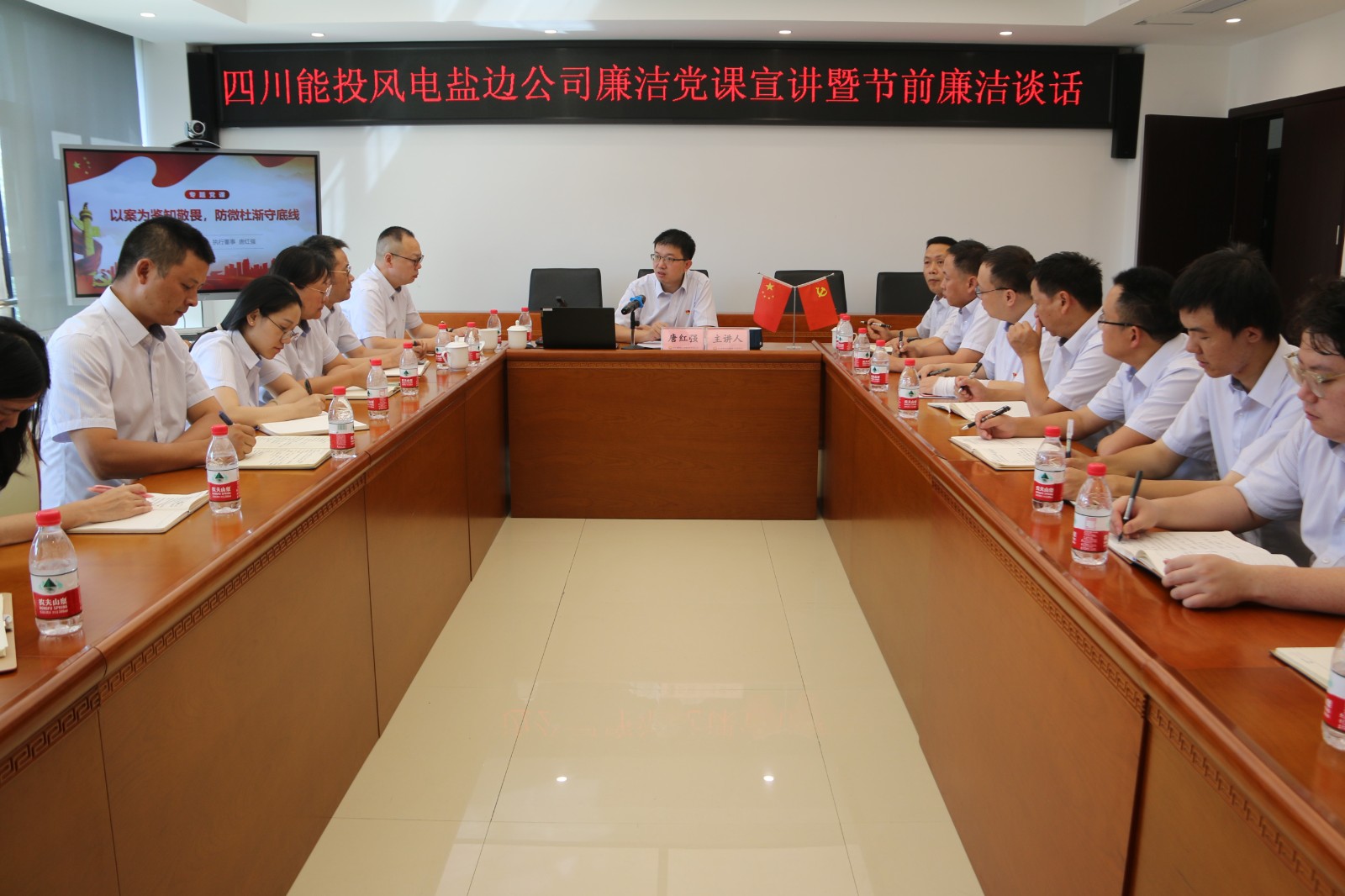 为深入贯彻落实全面从严治党要求,切实履行好党风廉政建设主体责任,9月26日下午,四川能投风电盐边公司党支部书记、执行董事唐红强以“以案为鉴知敬畏,防微杜渐守底线”为题讲授廉洁党课,公司全体干部职工参加本次活动。