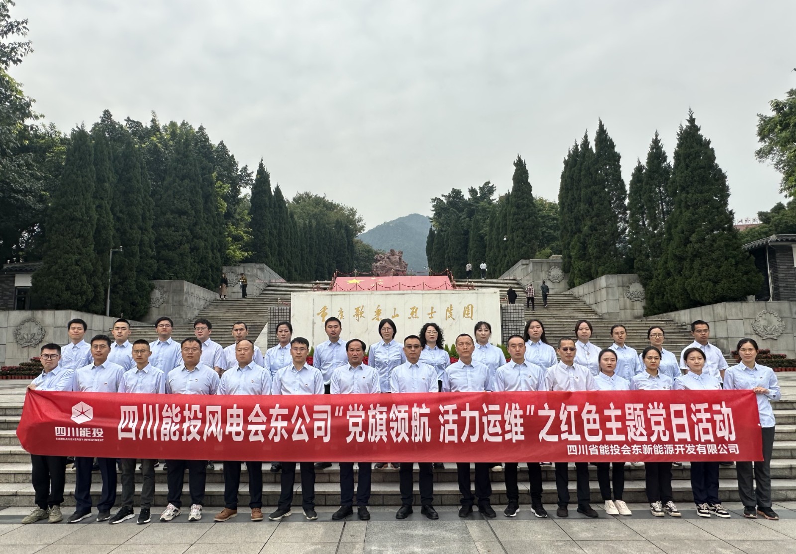 为深入学习贯彻习近平新时代中国特色社会主义思想和党的二十大精神,致敬革命英雄,缅怀革命先烈,弘扬革命精神,赓续红色血脉,切实提升干部职工党性修养,按照公司年度党建工作重点及“党旗领航 活力运维”党建品牌实施计划,四川能投风电会东公司于10月21日至24日组织党员及员工代表赴重庆歌乐山、中山四路开展了“党旗领航 活力运维”之红色主题党日活动。
