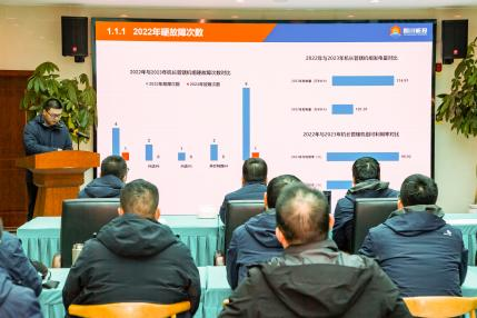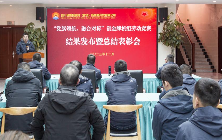 对标争先,在带动中增添动能。通过“党旗领航·融合对标”创金牌机组活动,实现了“对标赶超、奋勇争先”的目标,将积极向上的工作态度始终贯穿于公司标准化建设的各个环节,激荡起跨越赶超的磅礴力量,充分彰显了团结、务实、拼搏、超越的企业精神。12月16日,公司召开全员大会对“党旗领航·融合对标”创金牌机组活动结果进行了总结和表彰,通过风机标准化综合治理,2023年发电量同比进一步提升,风机故障率和故障处理时间(小时)同比大幅下降,各项指标均取得了优异的成绩,圆满完成了“四降一保一提升”目标任务。