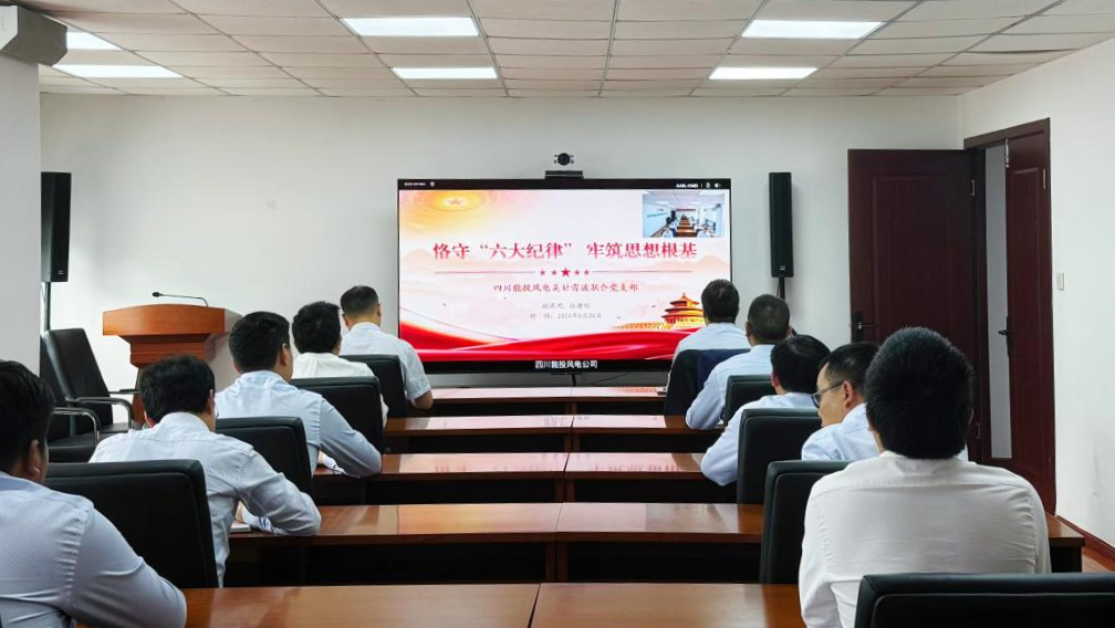 为深入开展党纪学习教育,将党纪学习教育与党中央重大决策、上级公司部署安排以及公司重点工作紧密结合起来,6月26日下午,四川能投风电美姑(雷波)公司党支部书记、董事长伍建刚以《恪守“六大纪律” 筑牢思想根基》为题讲授党纪学习教育专题党课。党课在本部以现场和视频方式开展,美姑(雷波)公司全体党员、中层管理人员和入党积极分子参加。