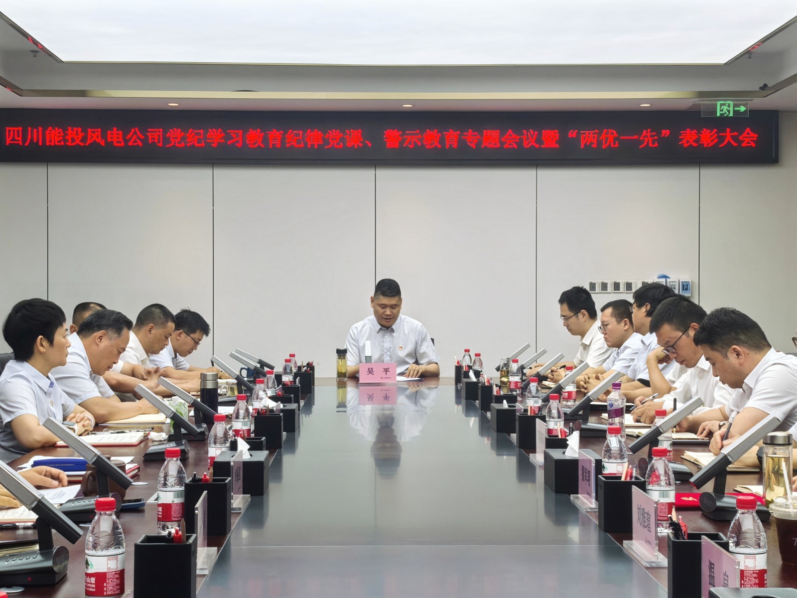 为推进党纪学习教育走深走实,引导公司广大党员干部强化纪律意识、增强党性修养,7月1日,四川能投风电公司党委召开警示教育专题会暨“七一”表彰会,开展系列活动隆重庆祝中国共产党成立103周年。公司党委书记、董事长吴平出席会议并讲授纪律党课,要求党员干部在学纪、知纪、明纪、守纪上树立更高标准、落实更严要求,切实增强政治定力、纪律定力、道德定力、抵腐定力。党委委员、纪委书记任荣结合典型案例开展以案说德、以案说纪、以案说法、以案说责,进行案例剖析和警示教育。会上还给公司2024年先进党支部、优秀共产党员、优秀党务工作者颁发了奖牌和证书。会后以党支部为单位开展重温入党誓词活动,组织党员回顾检视入党的初心和誓言,激励大家牢记初心使命、强化党性修养。