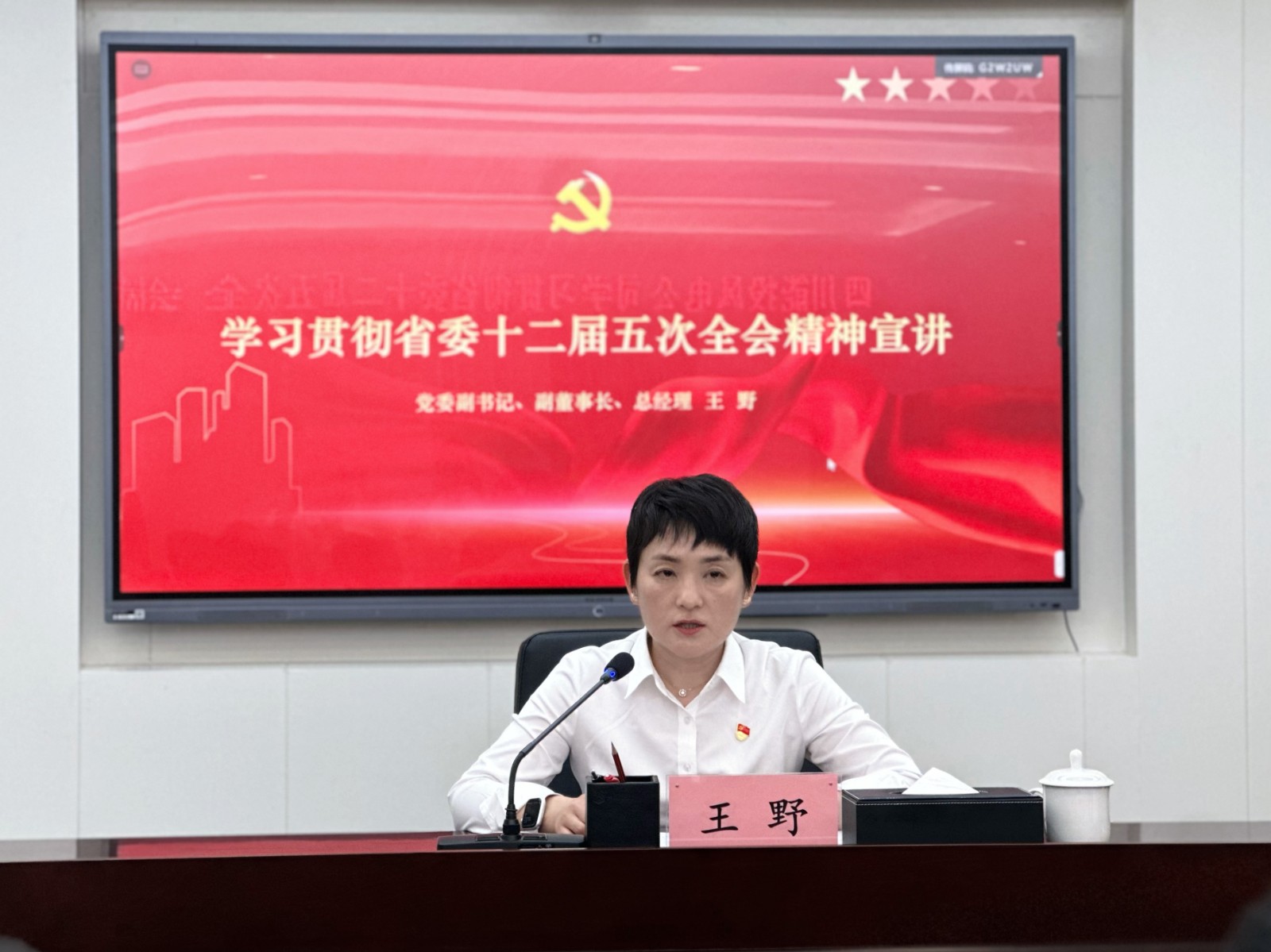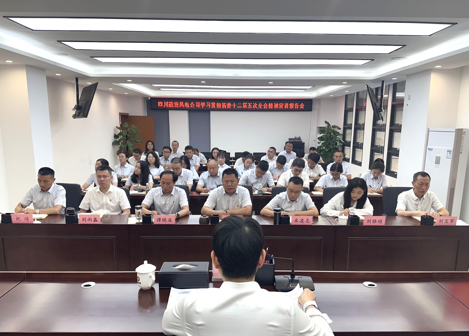 为深入传达学习贯彻省委十二届五次全会精神,引导广大党员干部更好地领会全会的精神实质和重要要求。7月4日,四川能投风电公司党委副书记、副董事长、总经理王野在会东公司专题宣讲省委十二届五次全会精神。会东公司党支部书记、董事长伍建刚主持。