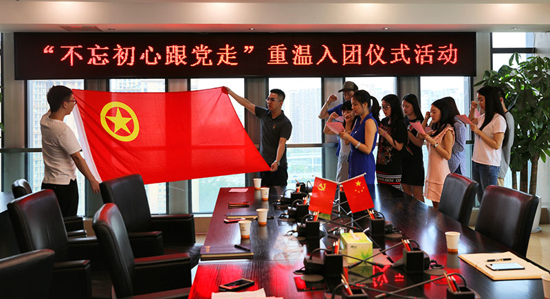 7月24日,风电公司团支部组织公司本部和项目公司在蓉团员举行“不忘初心跟党走”重温入团仪式活动。活动在团歌渲染的庄严气氛中开始,团支部书记周旭作为领誓人,带领大家高举右臂,紧握右拳,全体共青团员佩戴团徽,在庄严的团旗下宣誓,重温入团誓词,再次接受了一次思想洗礼。7月20日,会东公司、盐边公司团小组分别在生产建设现场组织团员进行 “不忘初心跟党走”重温入团仪式活动。通过本次活动,让团员青年时刻牢记自己的身份,反思自己是否履行了当初入团时的承诺,激发了作为共青团员的使命感、责任感和用实际行动践行团员誓词立足岗位做贡献的决心。