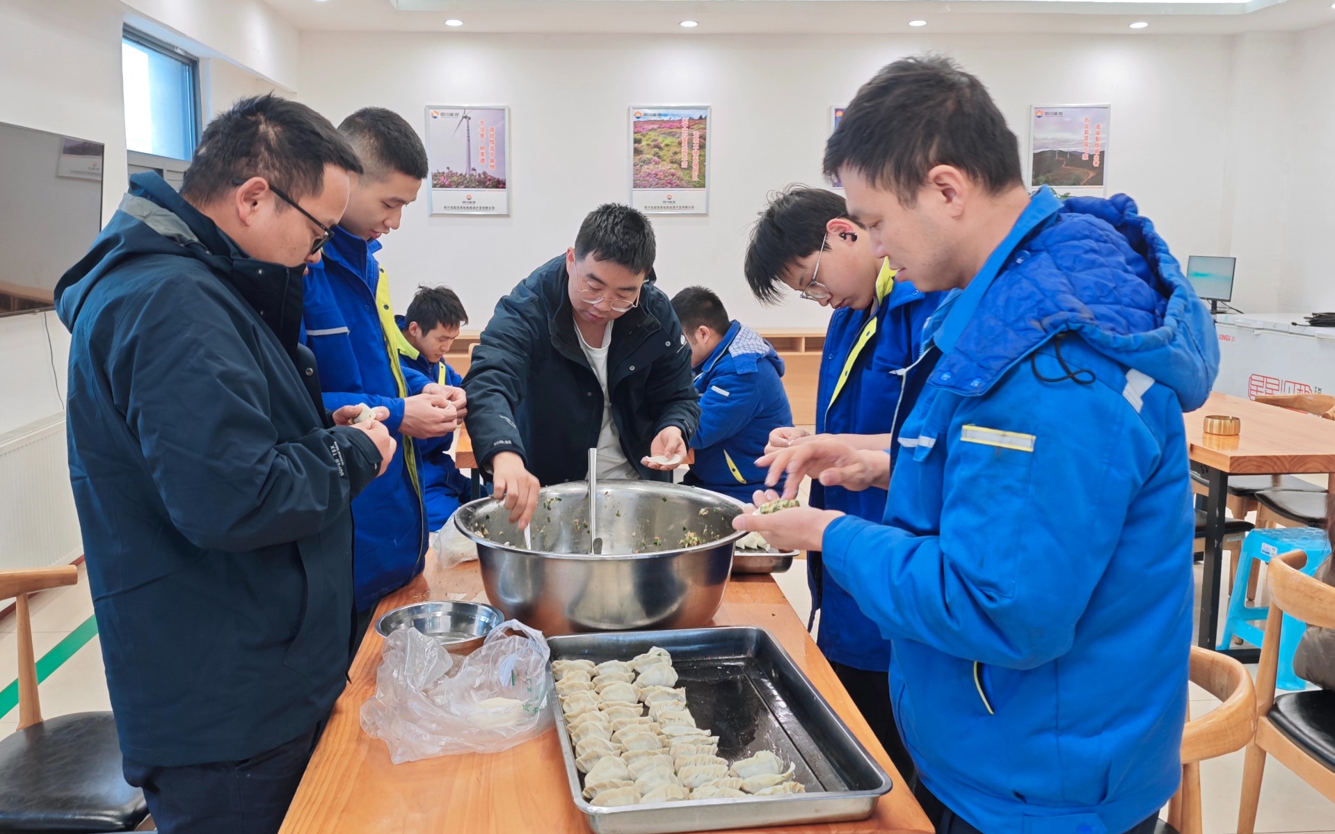 冬至子时阳已生,道随阳长物将萌。为了让离家在外的员工在冬日里感受到家的温暖,体会到节日的快乐,12月21日,四川能投风电美姑公司井叶特西风电场组织公司员工与东方风电驻场人员一起开展“迎冬至、包饺子”活动,为冬至的到来送上一缕温暖的饺香气。